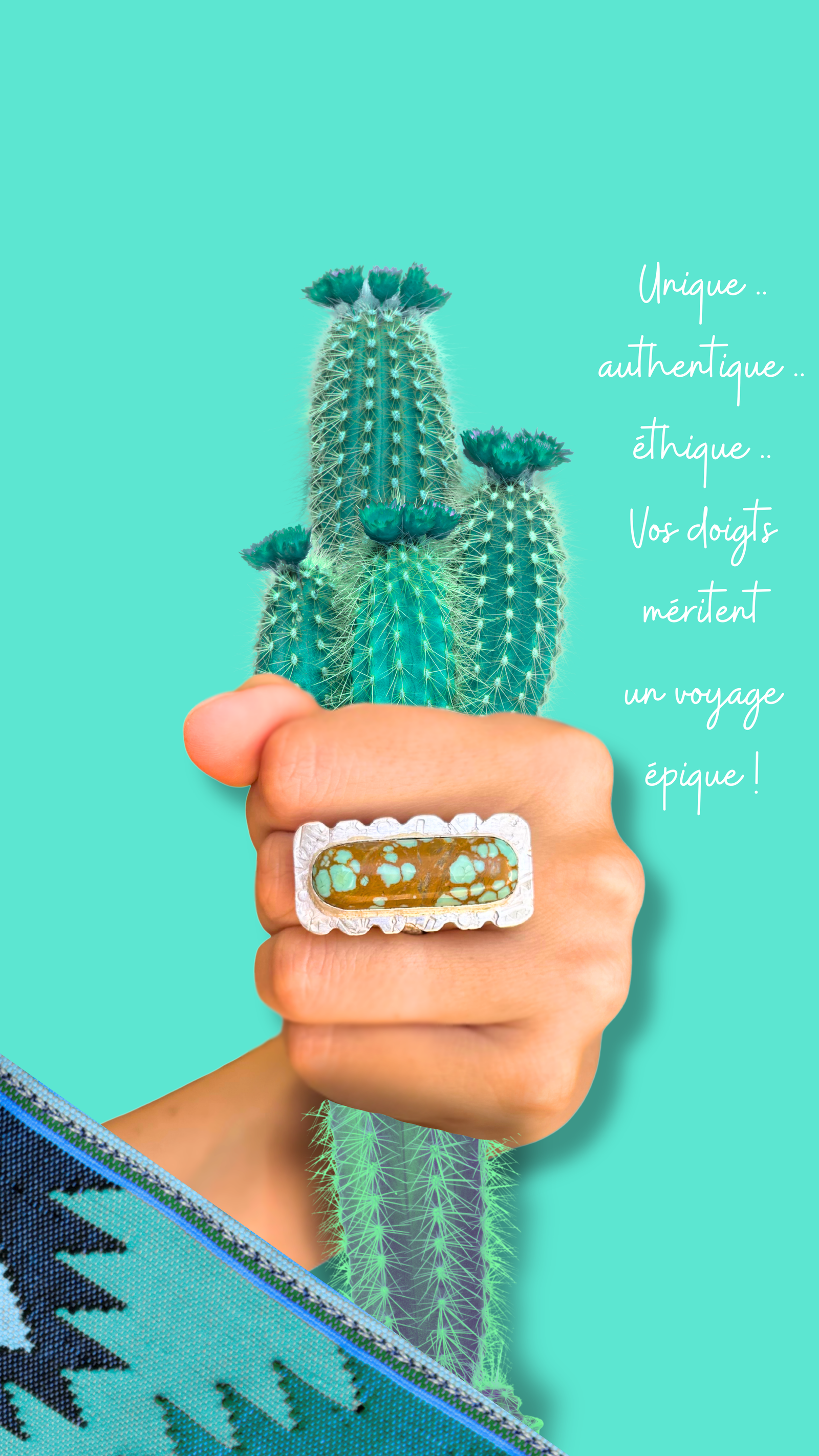 Chez TRIBU TURQUOISE, chaque bijou raconte le mariage entre une véritable turquoise minée en Amérique et son précieux argent 925, garantissant qualité et traçabilité, pour un look ethnique mais éthique.